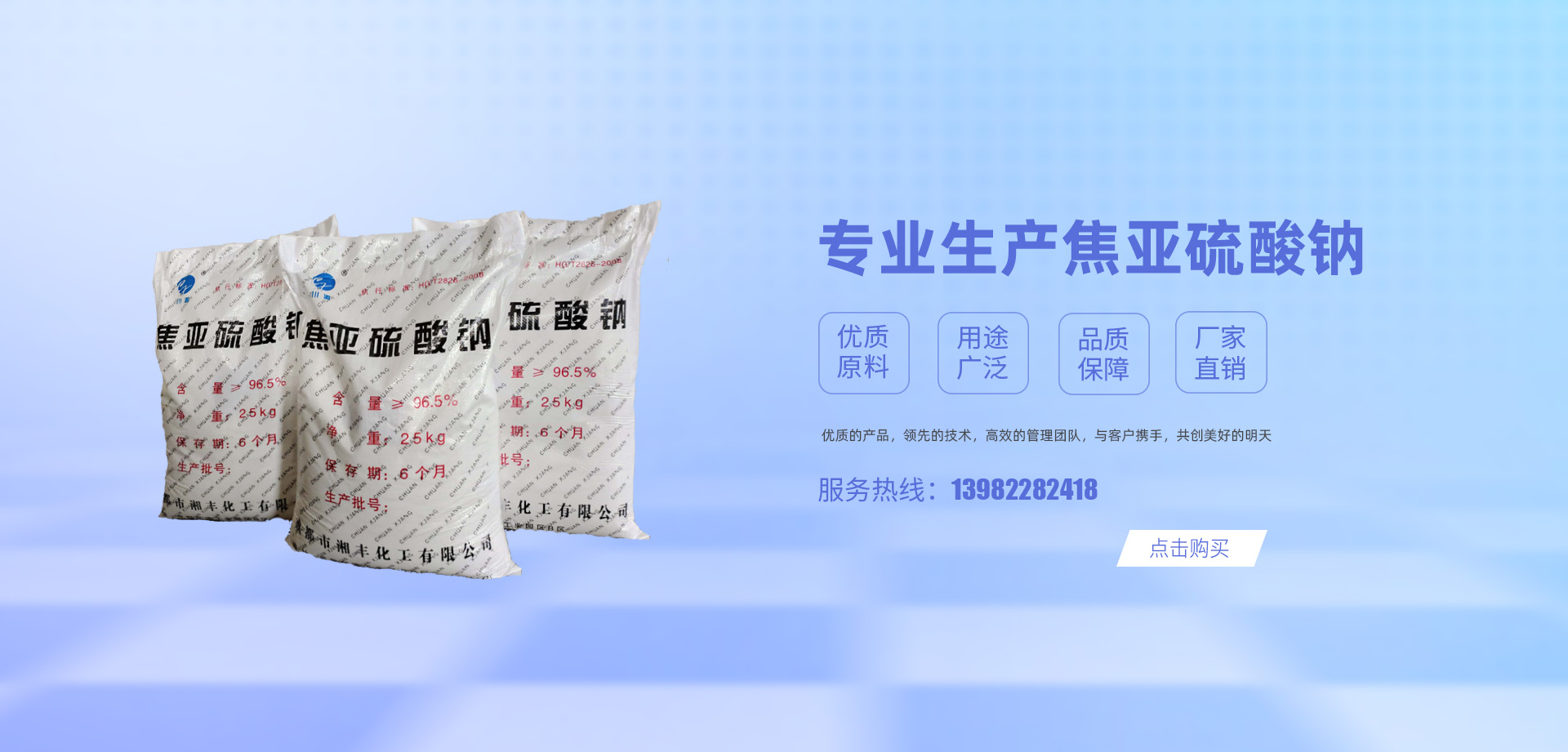 成都市湘豐化工有限公司座落在四川省成都市新津精細化工園中,占地10000多平方米,是一家有十幾年焦亞硫酸鈉生產經驗的企業(yè),設計年生產能力2萬噸。 焦亞硫酸鈉又稱二硫五氧酸鈉,重硫氧,有著廣泛的用途:在醫(yī)藥工業(yè)中用于生產氯仿、苯丙砜和苯甲醛;橡膠工業(yè)用做凝固劑;印染工業(yè)用作棉布漂白后的脫氯劑、棉布煮煉劑;制革工業(yè)用于皮革處理,能使皮革柔軟,豐滿、堅韌,具有防水、抗折、耐磨等性能...